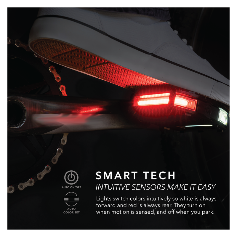 Een uniek kenmerk van deze pedalen is het gebruik van bio-motion technologie. Studies hebben aangetoond dat de op- en neergaande beweging van de voeten tijdens het fietsen de zichtbaarheid met 57% kan verbeteren in vergelijking met statische verlichting. Dit maakt de Arclight Pro pedalen bijzonder effectief in het trekken van de aandacht van andere weggebruikers, vooral in situaties met weinig licht.
